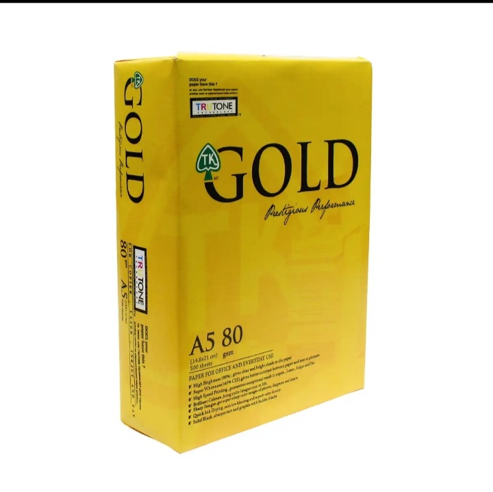 کاغذ آ۵ گلد بسته ۵۰۰عددی با کیفیت بسیار بالا و رنگ کاملا سفید میباشد که بدلیل مرغوبیت بالا در مراکز گوناگونی همچون ادارات مدارس و دفاتر فنی استفاده میشود.مواد اولیه ساخت این کاغذ بسیار با کیفیت و ضخامت مناسب میباشد.دستگاه های برش این نوع کاغذ لیزری میباشد و از دقت بالا برخوردار هستند.